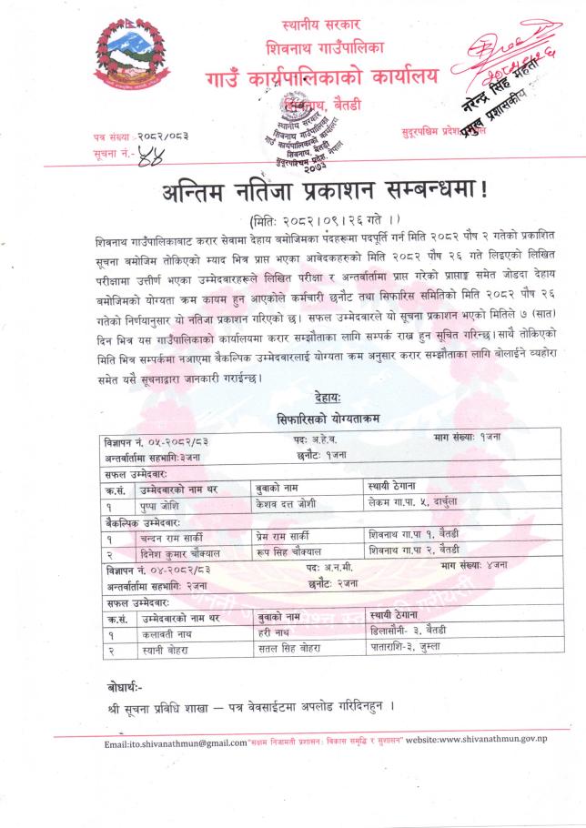शिवनाथ गाउँपालिकाको प्रगति प्रतिवेदन