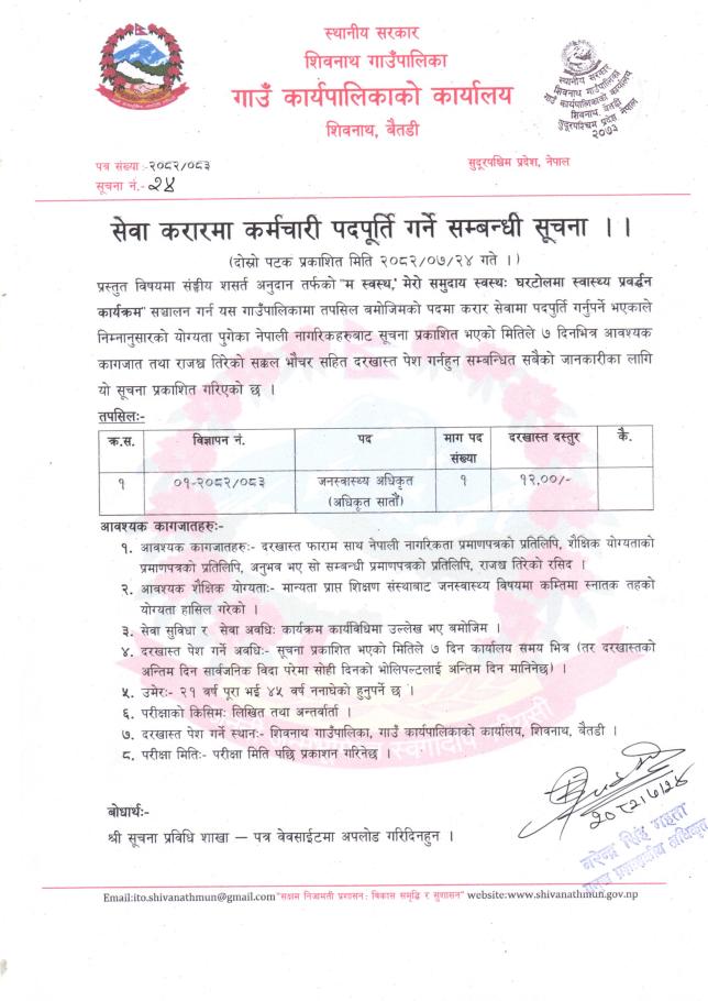 सेवा करारमा कर्मचारी पदपूर्ती गर्ने सम्बन्धी सूचना ।।
