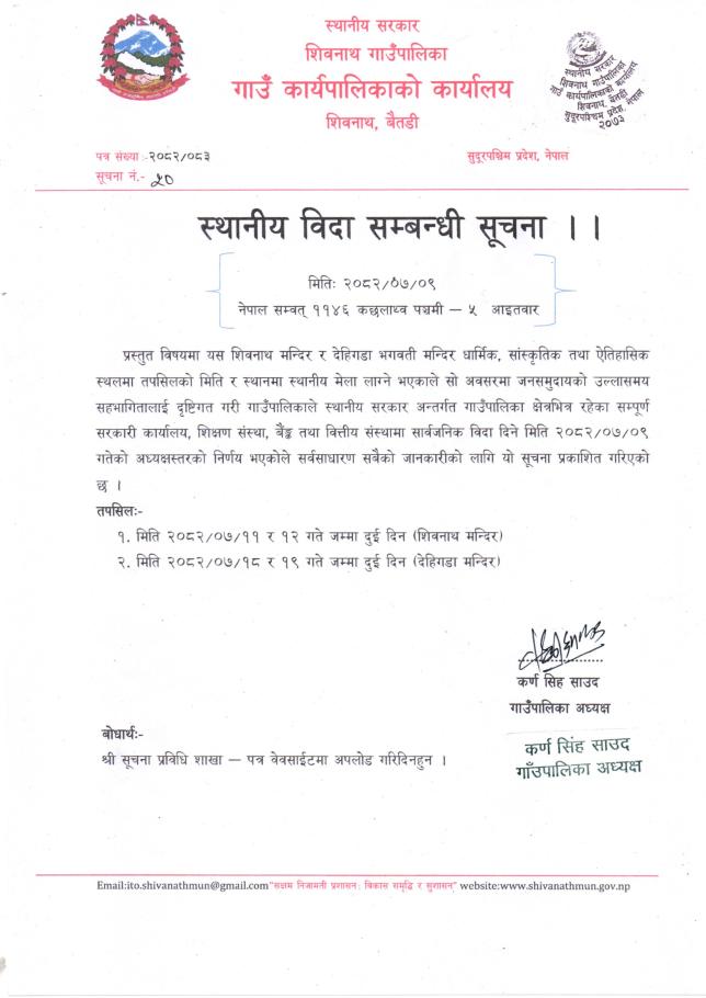 शिवनाथ गाउँपालिकाको प्रगति संग सम्बन्धित बिभिन्न भिडियोहरु हेर्न निम्न लिङ्कमा Click गर्नुहोस