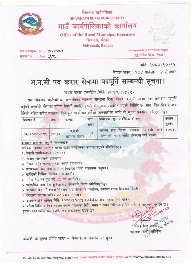 अ.न.मी पद करार सेवामा पदपूर्ति सम्बन्धी सूचना।