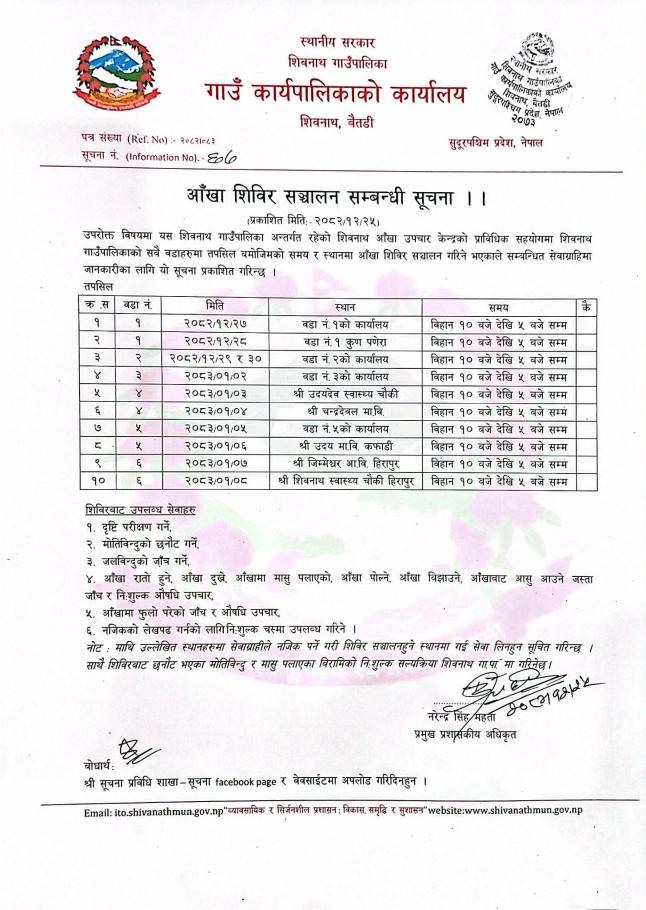 आँखा शिविर सञ्चालन हुने सम्बन्धी सुचना ।।
