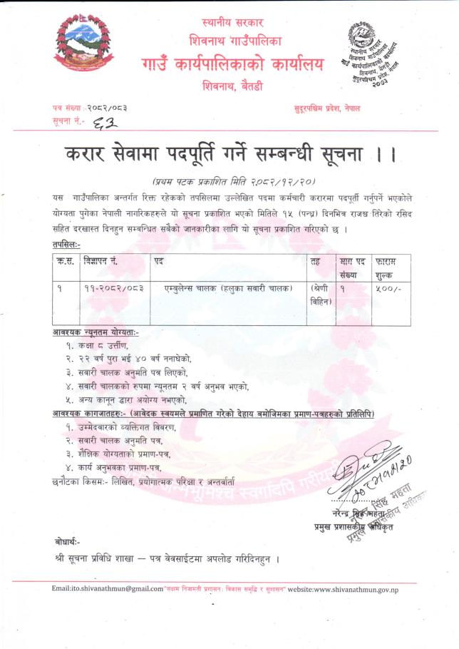 करार सेवामा पदपूर्ती गर्ने सम्बन्धी सूचना ।।