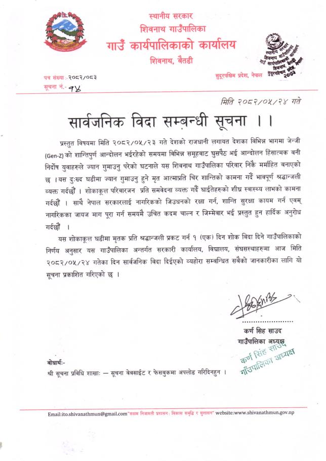सार्वजनिक विदा सम्बन्धी सूचना ।।